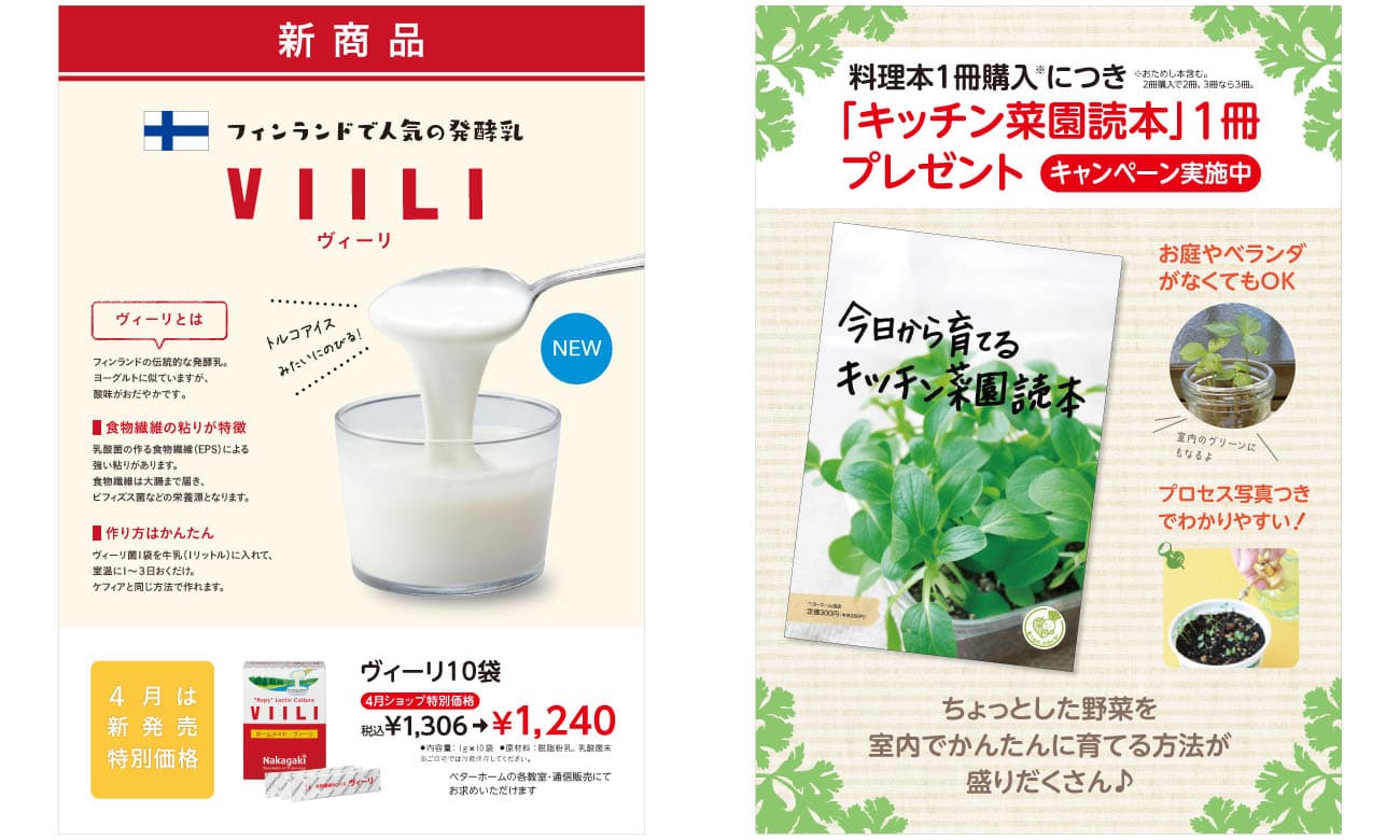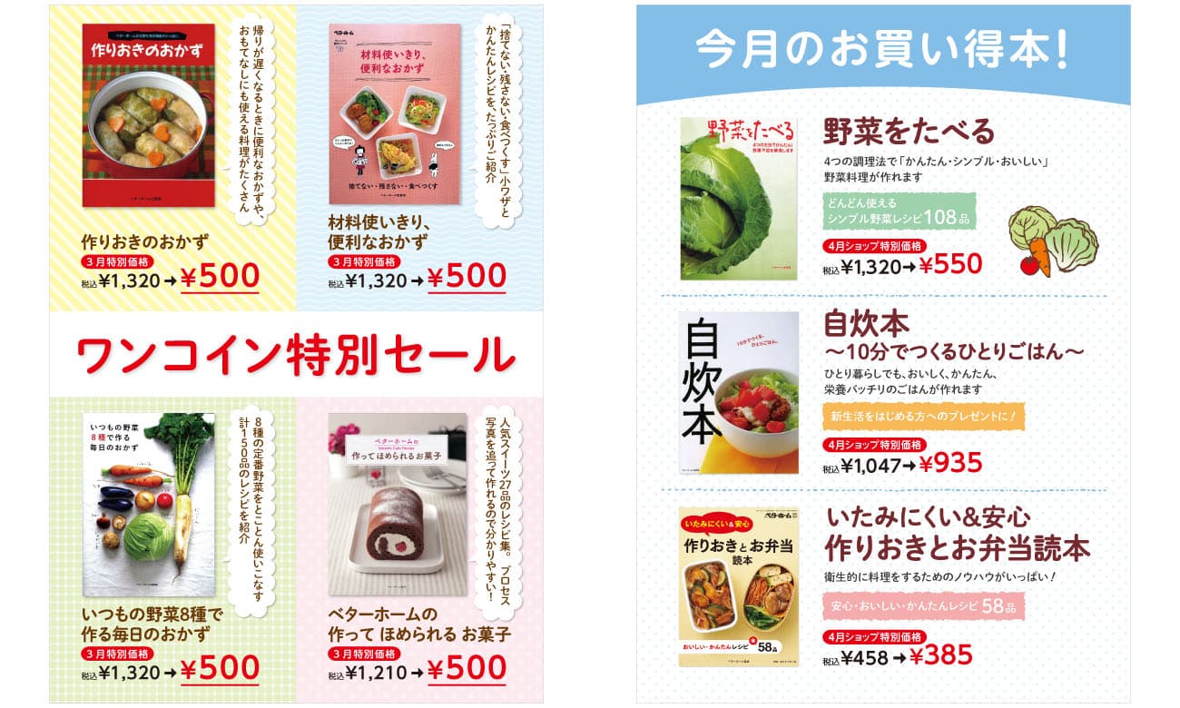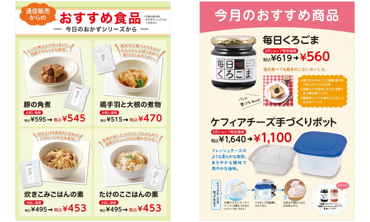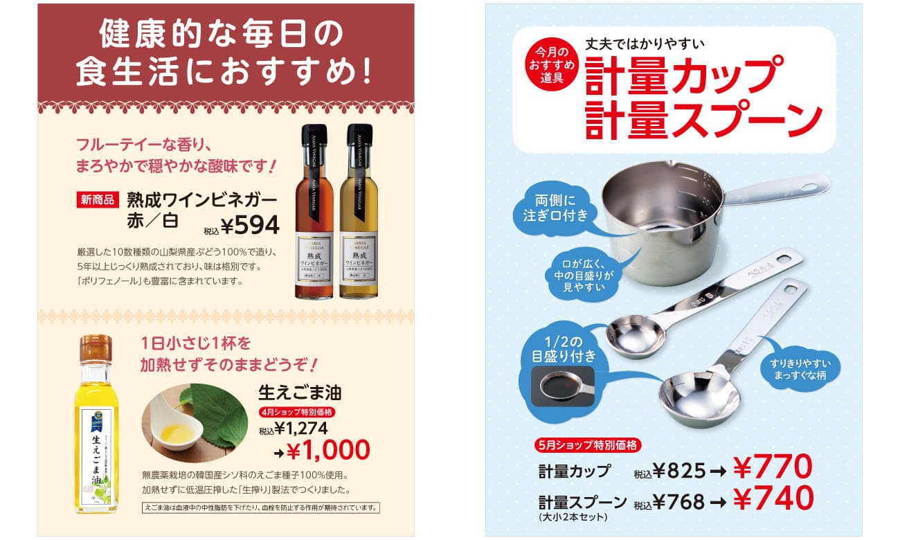 料理教室用のPOPです。内容は、今月のお買い得商品、新商品の紹介など