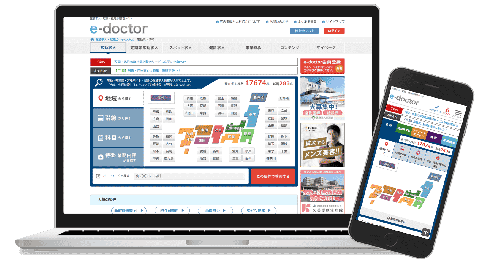 医師の求人・転職サイト「e-doctor」は、株式会社リンクスタッフが運営を行っているサイトで、在職時の2022年11月~2025年4月にかけて、Webデザイナーとして、フロントエンドに関わるデザイン制作全般と、関係医療機関や会員医師向けのプロモーションに携わりました。
